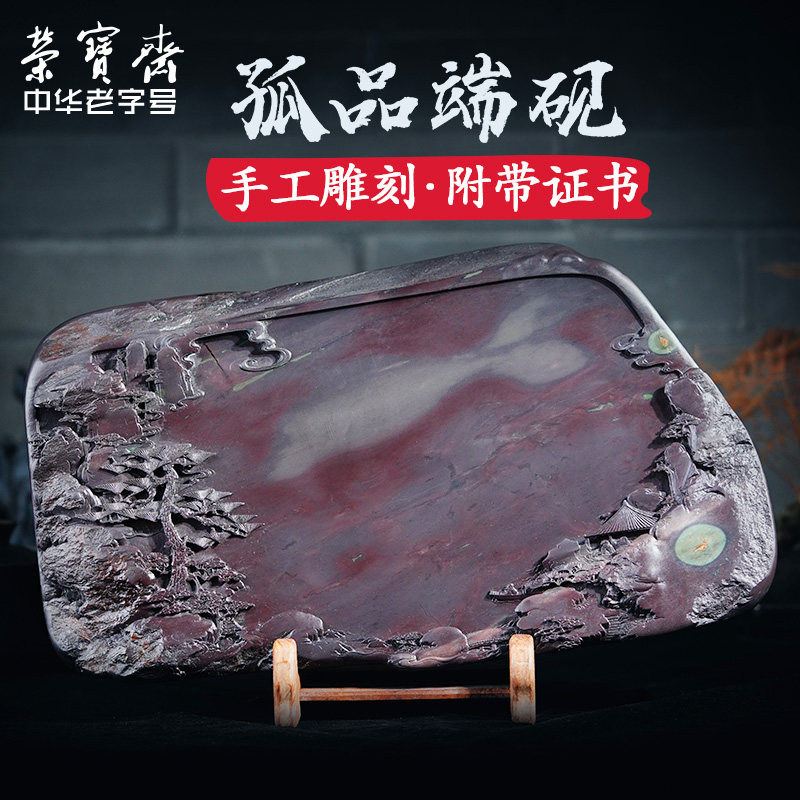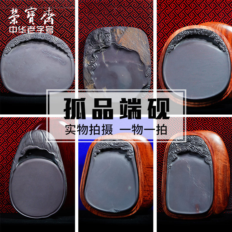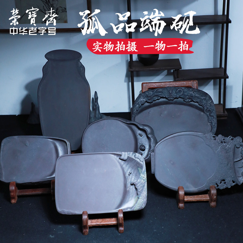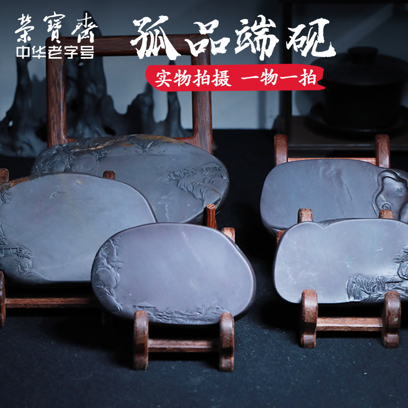 荣宝斋砚台孤品端砚文房四宝书法国画原石手工精雕精品七星岩白端礼盒