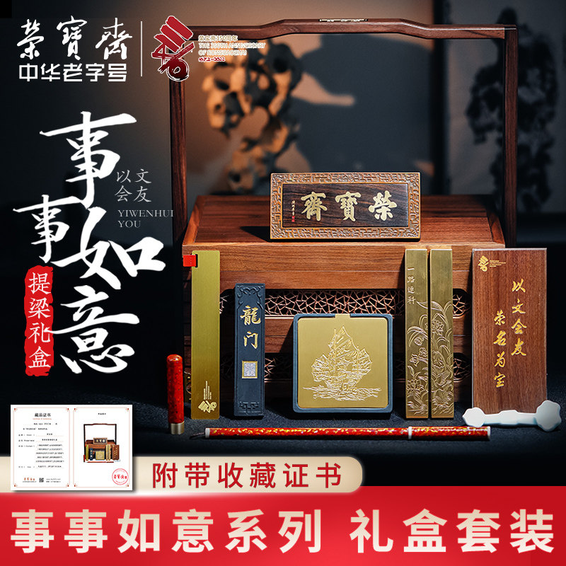 荣宝斋文房四宝套装砚台镇尺毛笔事事如意提盒文房礼盒笔墨纸砚书法国画送礼礼盒
