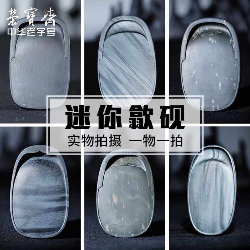 荣宝斋手把迷你砚台歙砚文房四宝毛笔研墨条书法国画老坑墨盒砚台孤品水波金星金晕眉纹礼盒