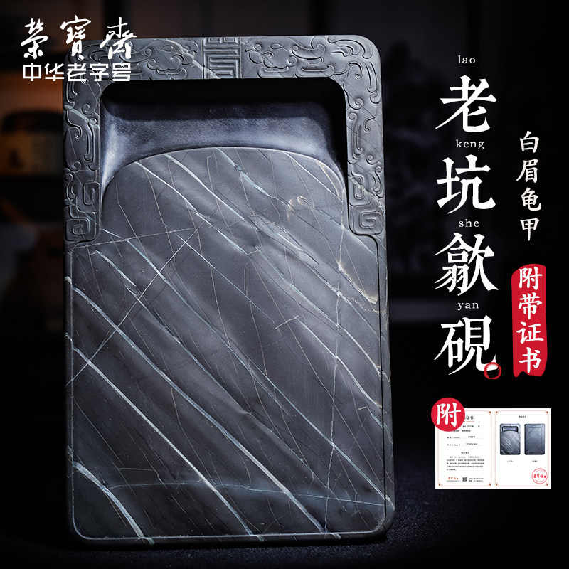 荣宝斋白眉龟甲老坑歙砚孤品原石砚台文房四宝研墨条书法国画手工精雕天然砚石礼盒送礼