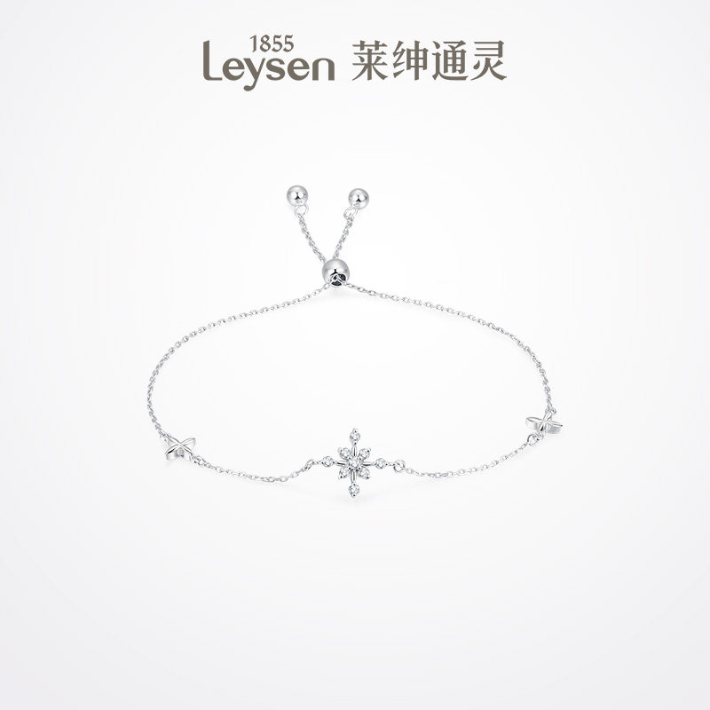 莱绅通灵珠宝18K金女款钻石手链手镯精致雪绒花 花园派对白色恋人