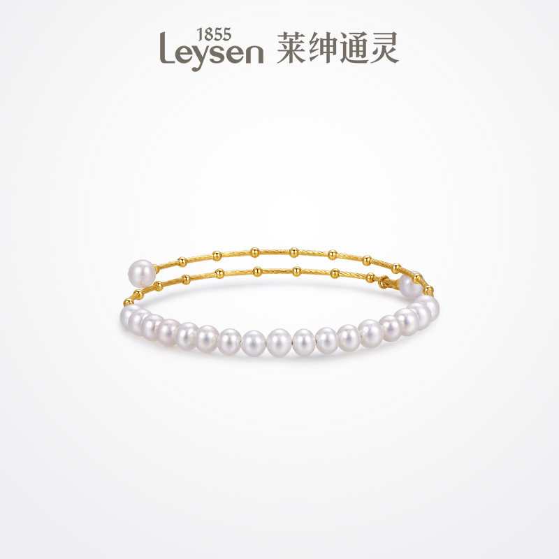莱绅通灵珠宝 only系列 暮光 18K金淡水珍珠开口手镯