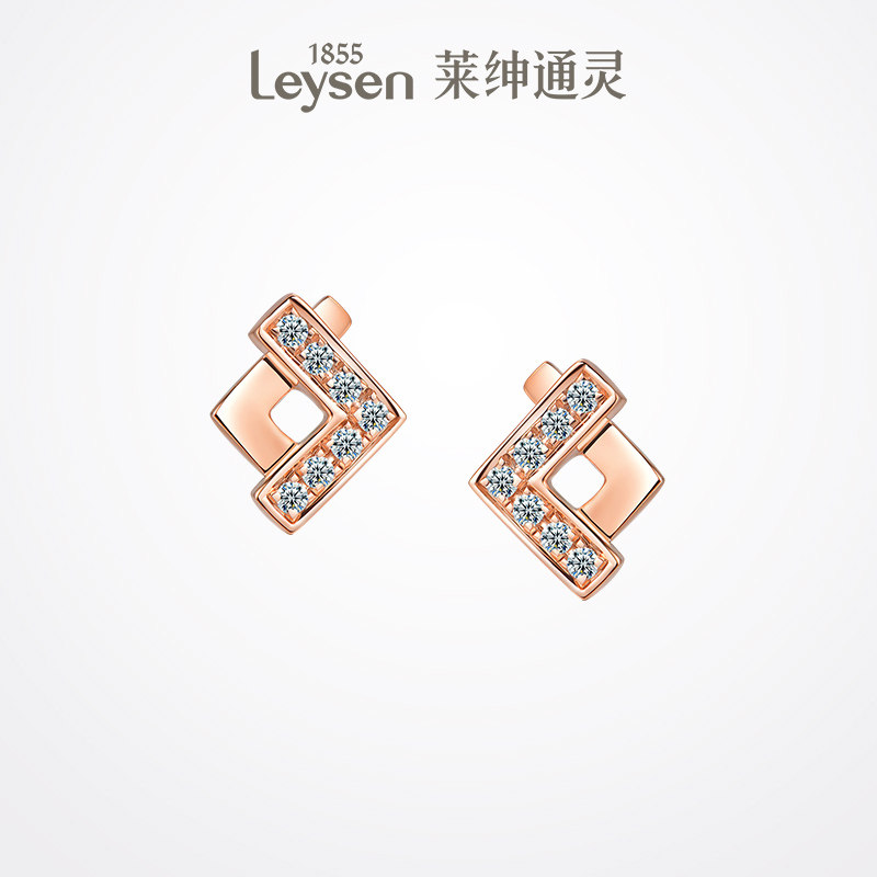 莱绅通灵珠宝 简约钻石耳钉18K金钻石耳饰耳环四叶草
