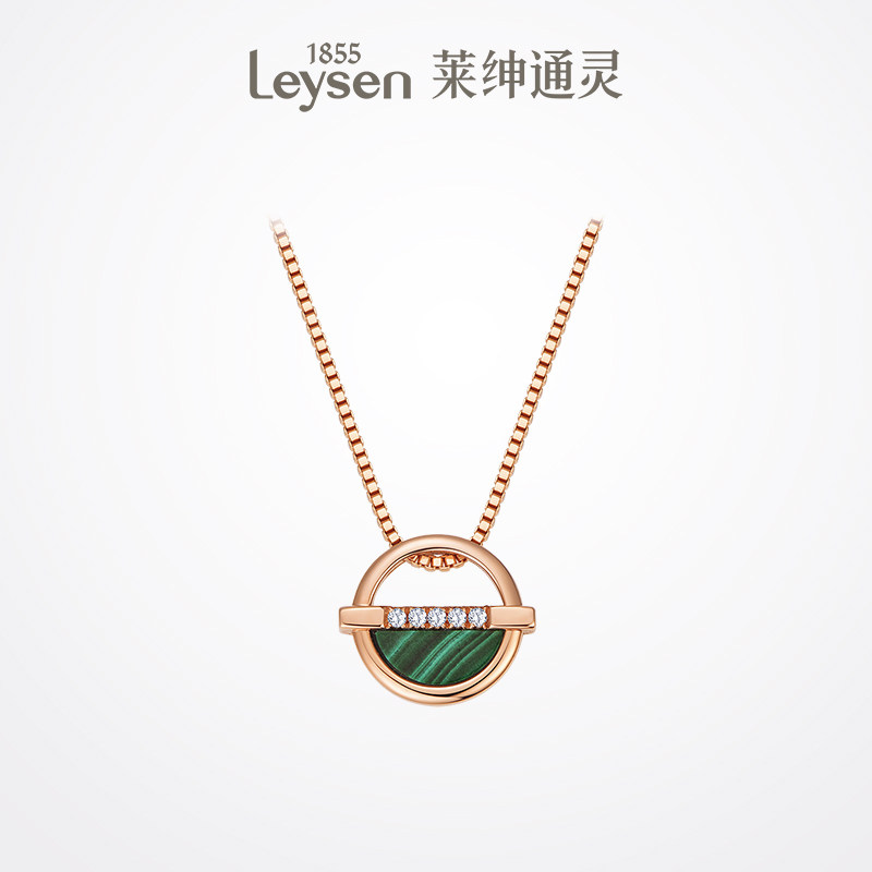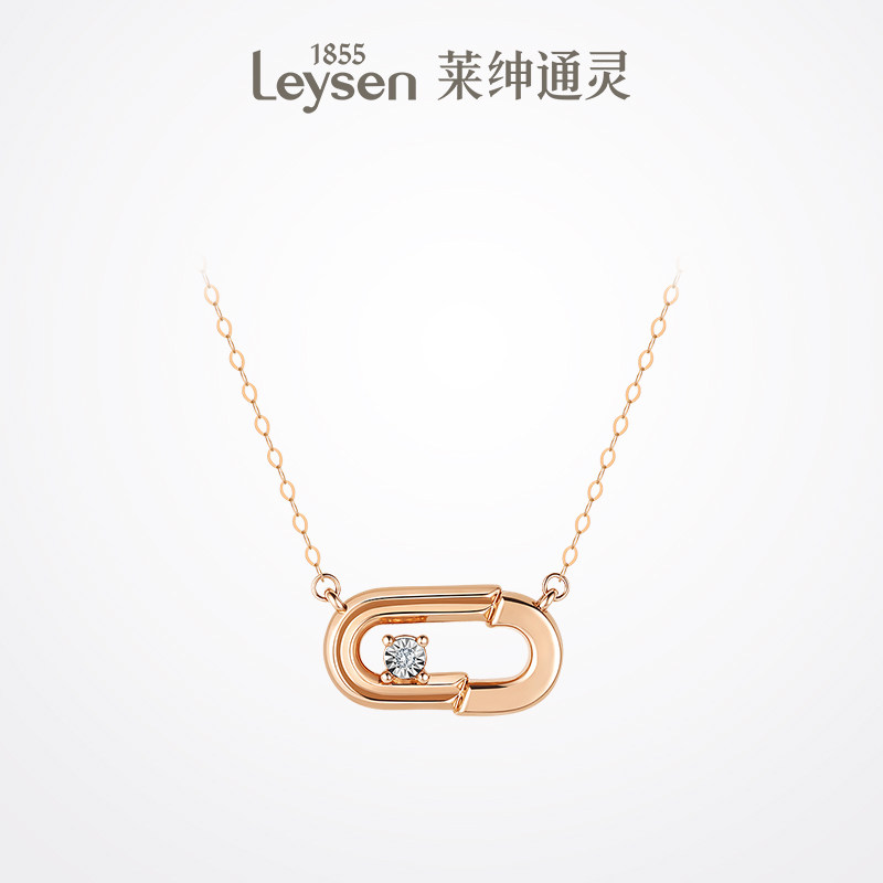【顺丰正常发货】莱绅通灵珠宝18k金钻石项链女 双环玫瑰金吊坠