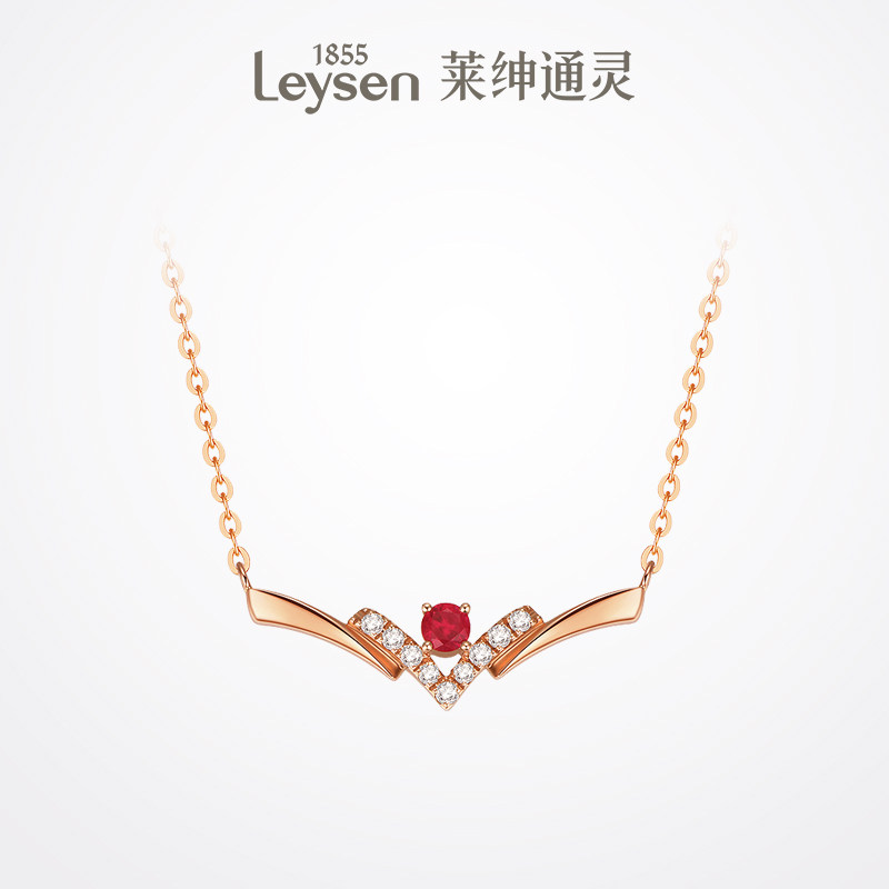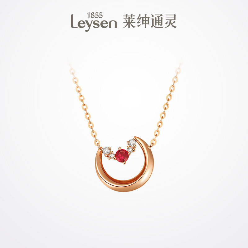 Leysen莱绅通灵珠宝 闪耀红宝系列 星月 18K金红宝石钻石项链女