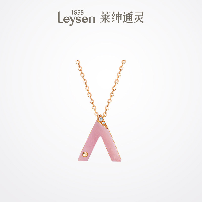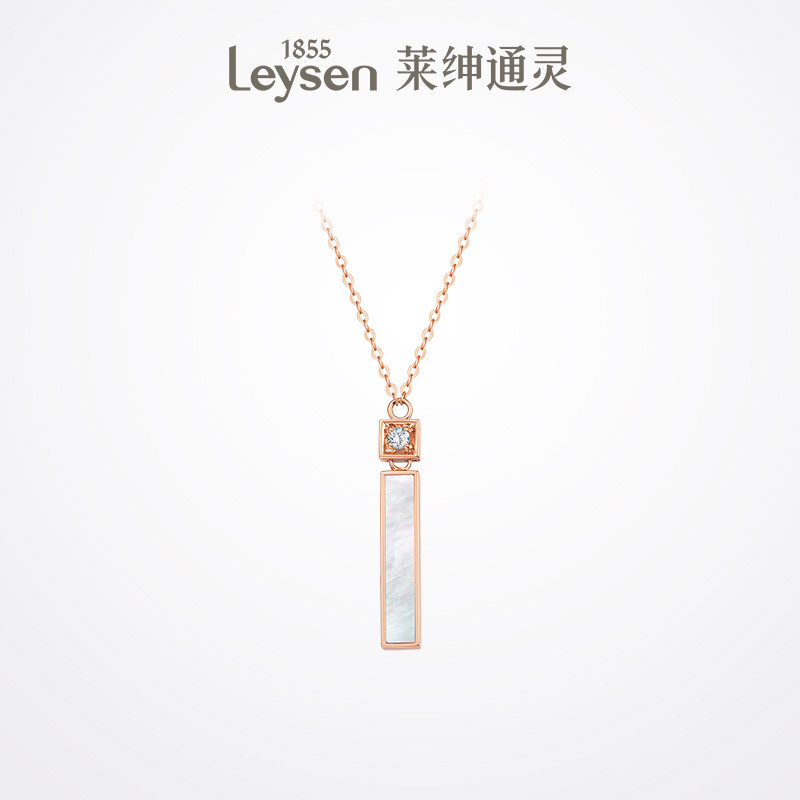 莱绅通灵珠宝时尚百搭18K金钻石吊坠 贝母钻石项链女 ONE钻石项链