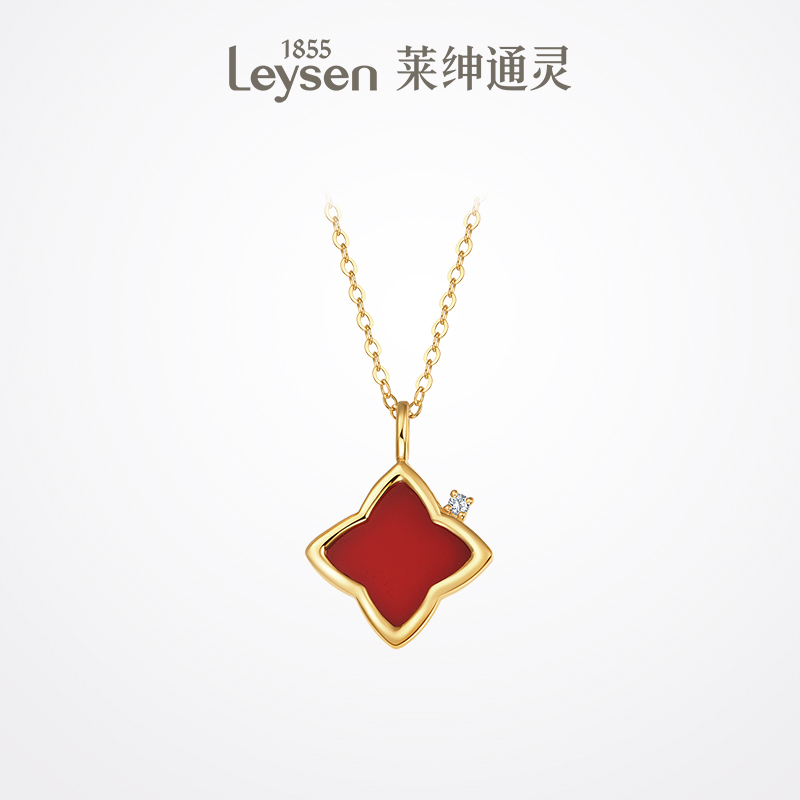 【现货】莱绅通灵珠宝红玛瑙钻石项链18K金HER她系列菱形纹吊坠女