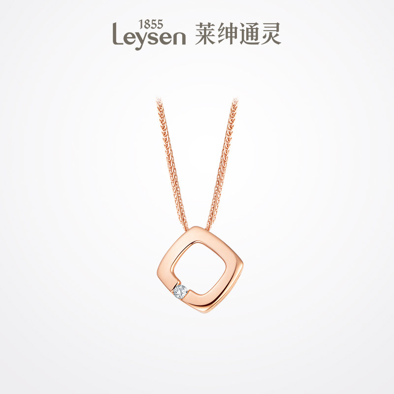 莱绅通灵珠宝小方心项链女 18K金钻石吊坠花园派对简约菱形1款2戴