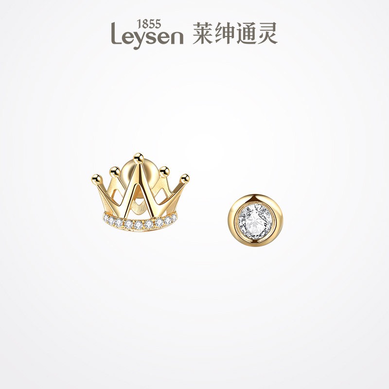 莱绅通灵珠宝 18K金耳钉女 耳饰耳环不对称 钻石耳钉正品 小皇冠