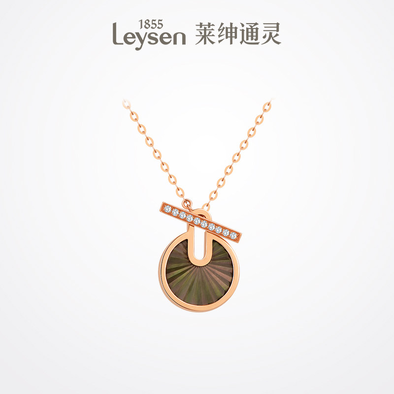 莱绅通灵珠宝 18K金黑贝母钻石吊坠 经典优雅OT扣探锁钻石项链