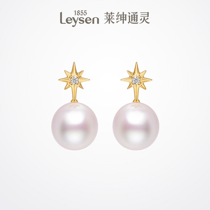 莱绅通灵珠宝 Only系列 星芒 18K金淡水珍珠耳钉 钻石耳钉耳环