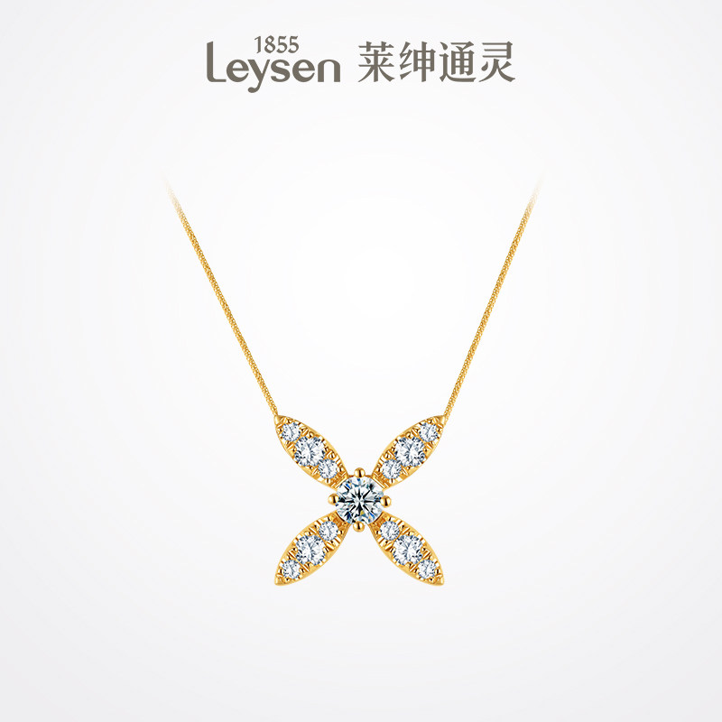 莱绅通灵珠宝 传世金1855系列鸢尾花 999足金黄金钻石项链