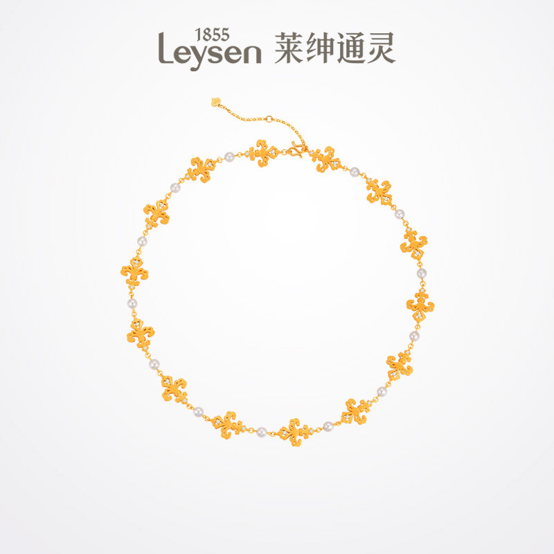 【商场同款】莱绅通灵计价 ART系列鸢尾 999足金黄金淡水珍珠项链