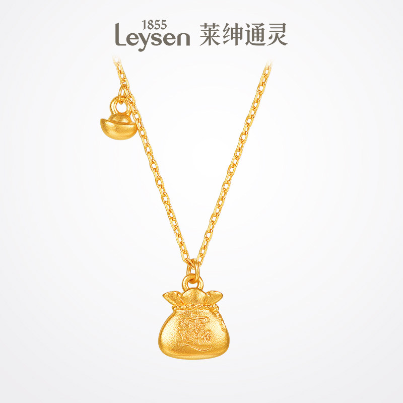 莱绅通灵珠宝 传世金计价 招财进宝福袋 999足金黄金项链钱袋子