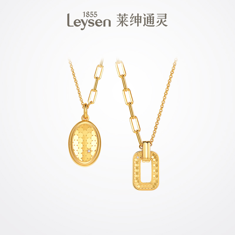 【新品】莱绅通灵珠宝 极光金 999足金黄金吊坠 双环圆牌黄金项链