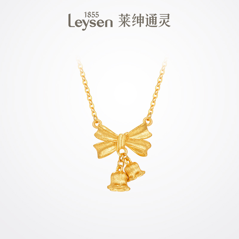莱绅通灵珠宝 传世金 1855系列铃兰花开 999足金黄金项链 吊坠
