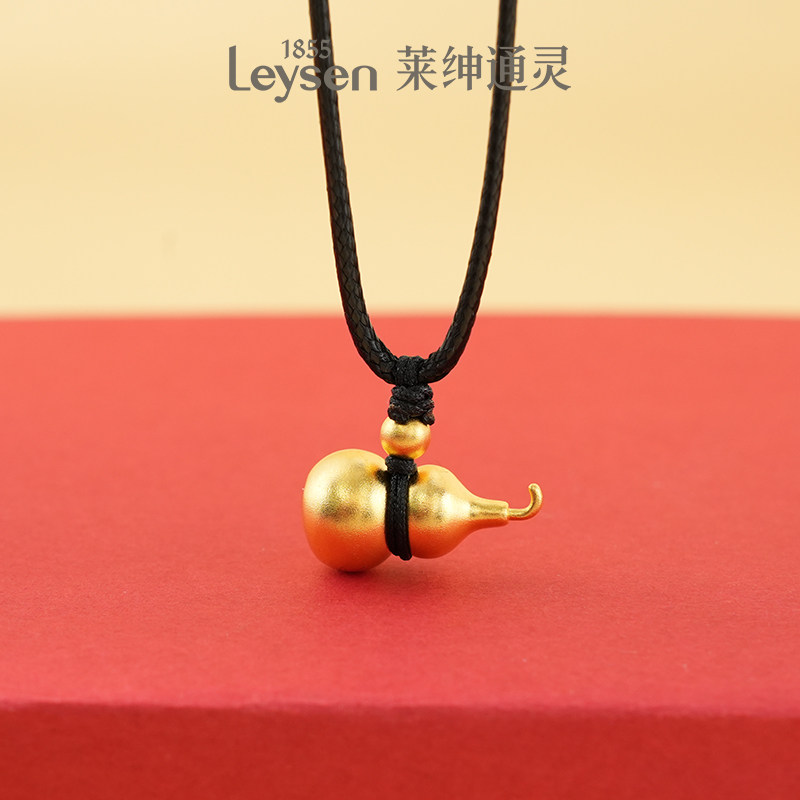 莱绅通灵珠宝 传世金计价 葫芦 999足金黄金吊坠黑绳项链