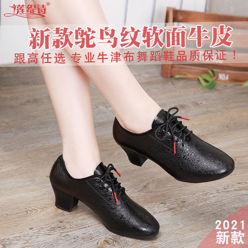 2021新款专业拉丁舞鞋成人女形体真皮舞蹈鞋中高跟软底教师跳舞鞋