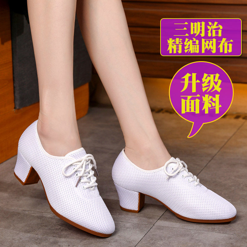 夏季专业拉丁舞鞋成年女士跳舞鞋女软底中高跟网布形体广场舞蹈鞋