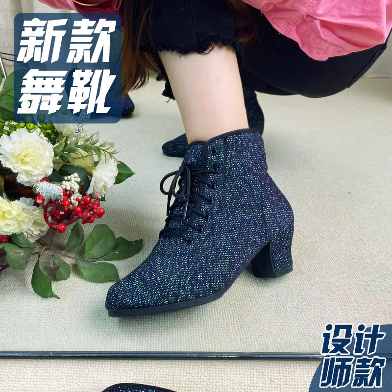 秋冬新款专业拉丁舞鞋成年女士软底跳舞教师形体中高跟广场舞蹈鞋