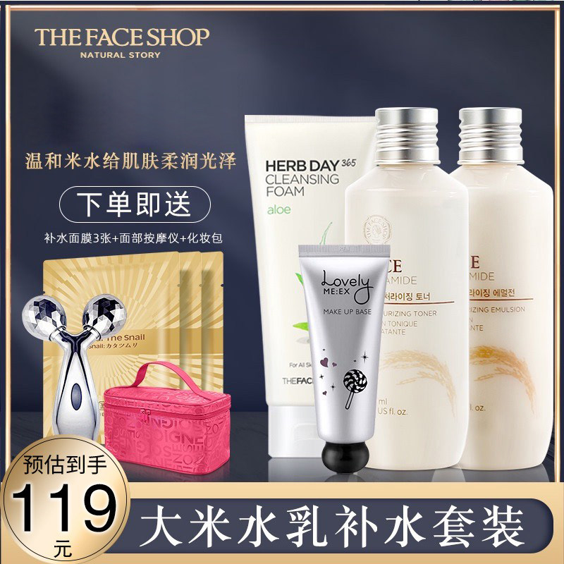 菲诗小铺The Face Shop大米晶透保湿柔肤水乳二件套温和补水护肤