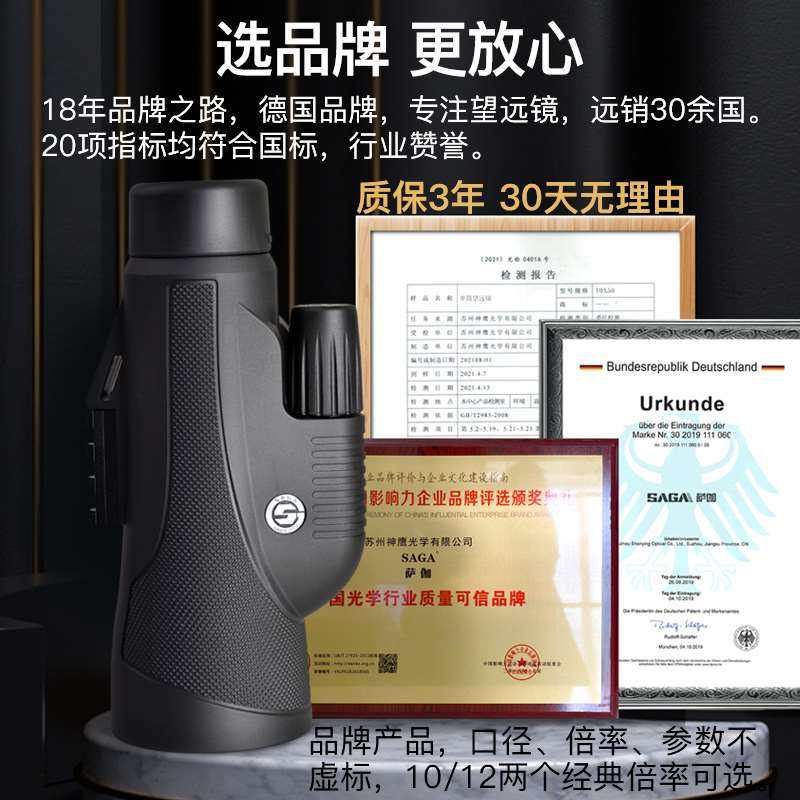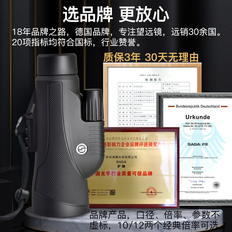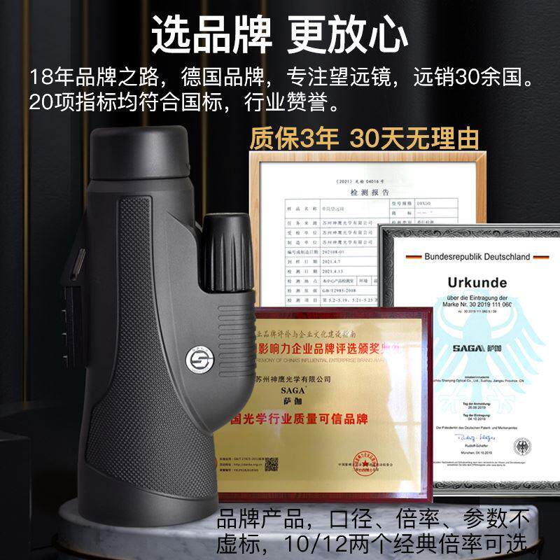 SAGA萨伽10X50/12X50单筒望远镜高倍高清专业级户外便携夜视手机