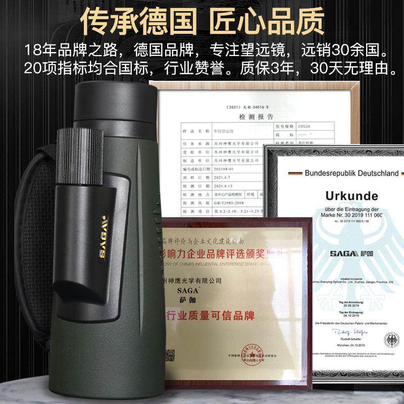 萨伽单筒高倍高清望远镜夜视15倍50大口径专业级户外成人手机拍照