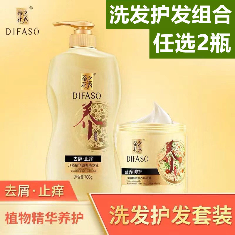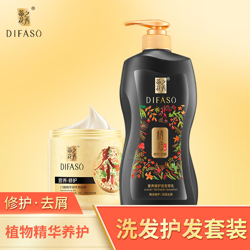 蒂花之秀洗发水焗油膏护发膜组合套装八植精华调养去屑止痒洗发露