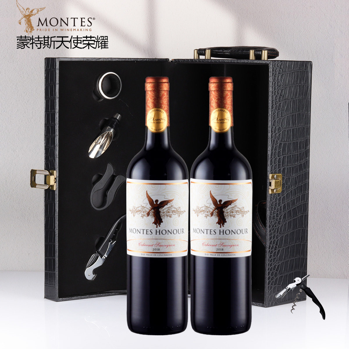 智利原瓶进口蒙特斯天使荣耀赤霞珠干红葡萄酒双支礼盒装顺丰包邮