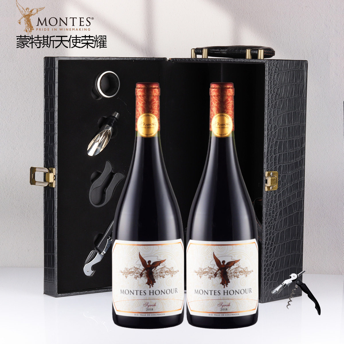 智利原瓶进口蒙特斯天使荣耀西拉干红葡萄酒双支礼盒装官方正品