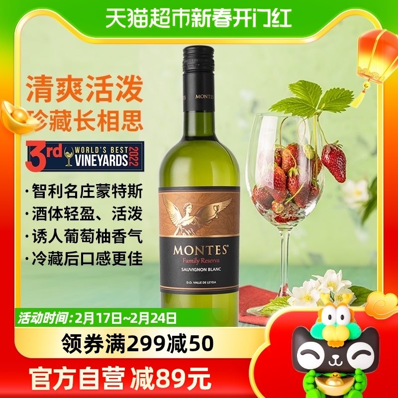 白葡萄酒长相思霞多丽蒙特斯Montes智利进口经典单瓶正品官方旗舰