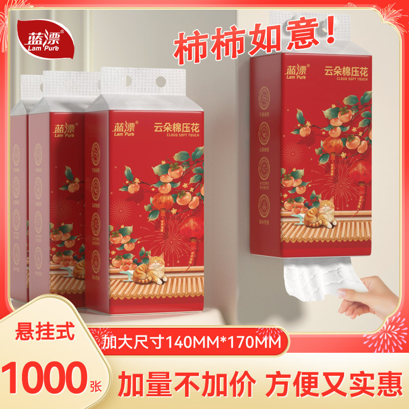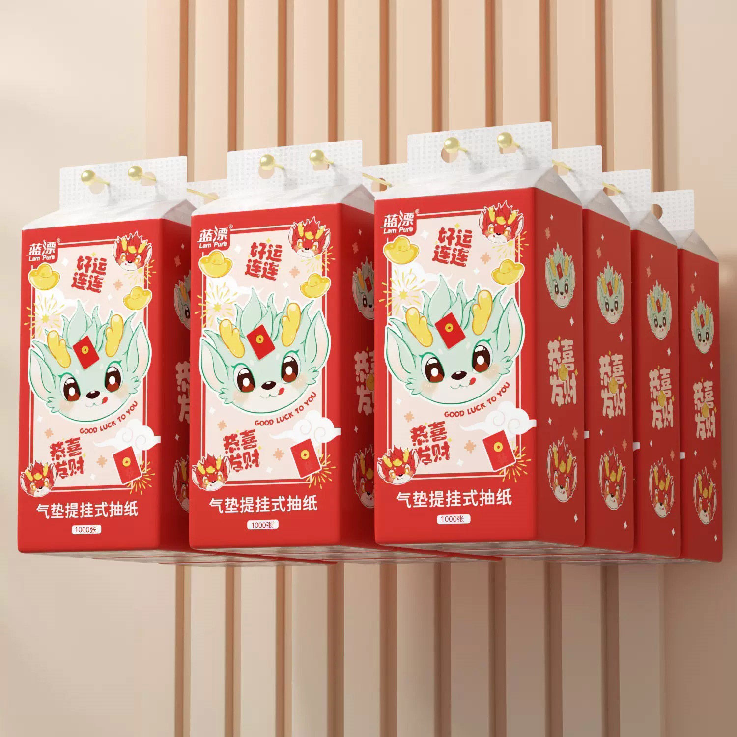蓝漂1000张抽纸龙年喜庆大包卫生纸悬挂式餐巾纸家用实惠装面巾纸