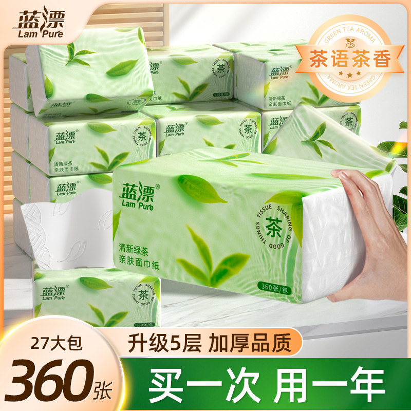 蓝漂绿茶压花大包抽纸整箱批卫生纸巾家用实惠装餐巾面巾纸婴儿纸