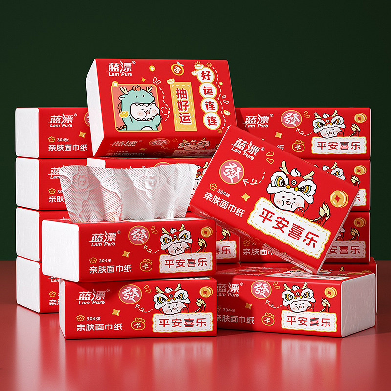 蓝漂新年装龙年悬挂式抽纸柔纸巾家用整箱批餐巾纸擦手纸卫生厕纸