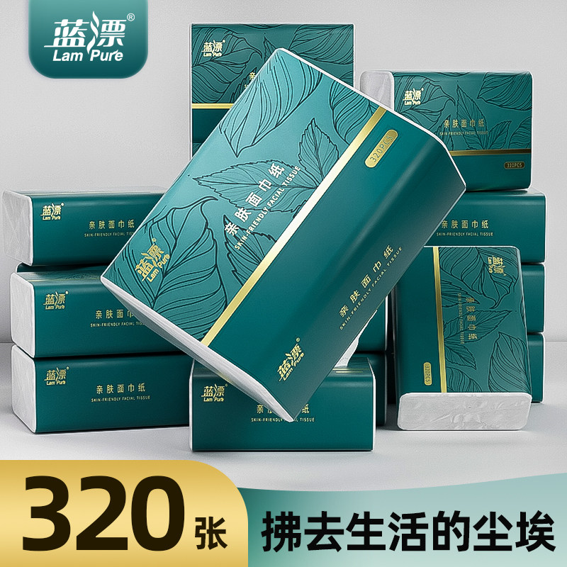 320张纸巾餐巾纸卫生纸家用整箱婴儿擦手纸实惠装蓝漂抽纸面巾纸