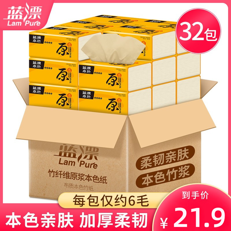 蓝漂抽纸32包本色纸巾卫生纸整箱批发小包餐巾纸家用便携实惠装