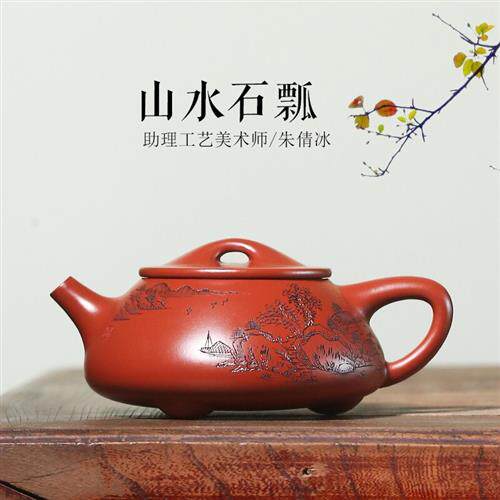 藏壶天下宜兴紫砂壶纯手工石瓢壶功夫泡茶壶茶具套装山水刻绘(单