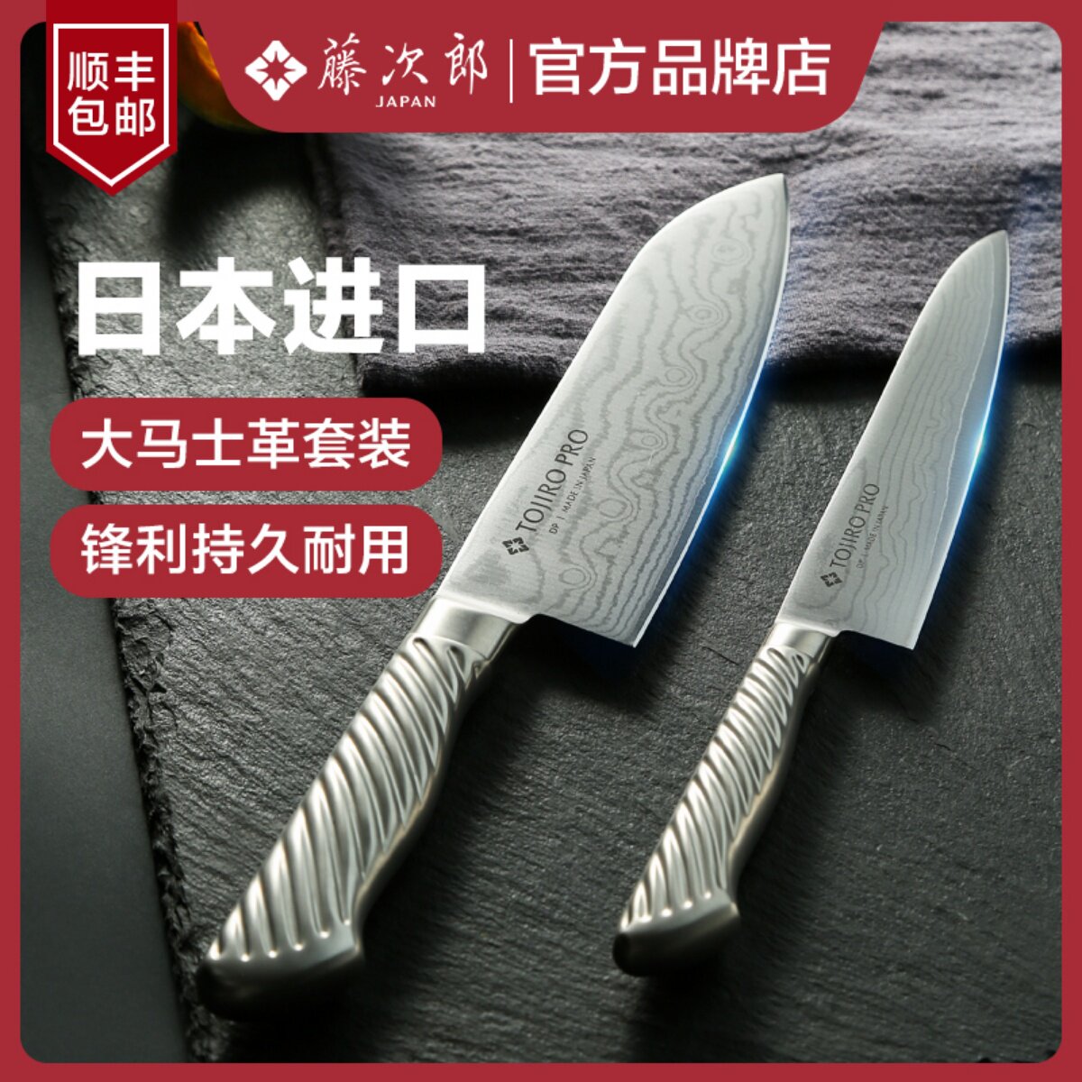 日本进口藤次郎全钢三德刀水果刀套装大马士革钢刀具日式厨刀菜刀