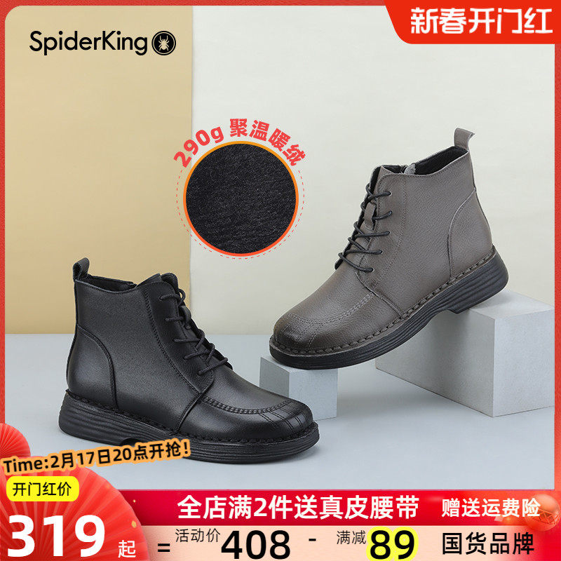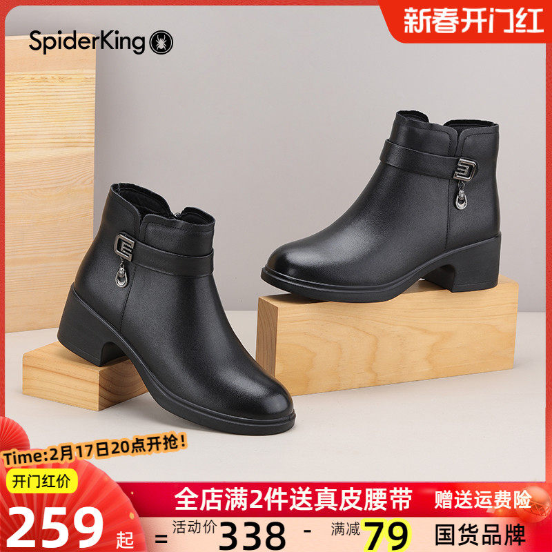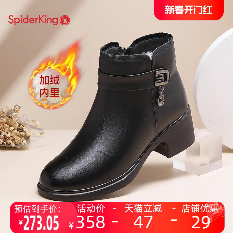 蜘蛛王女靴加绒2023冬季新款保暖短靴真皮妈妈棉鞋羊毛中老年皮靴