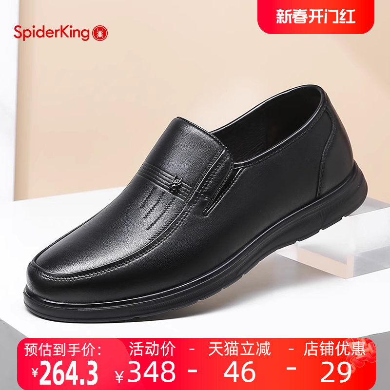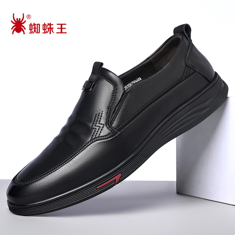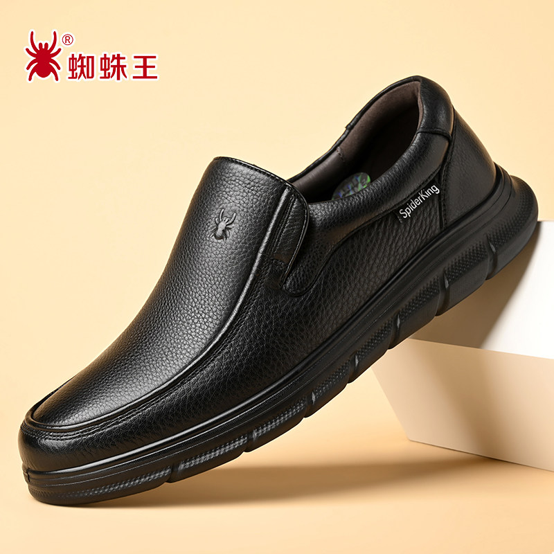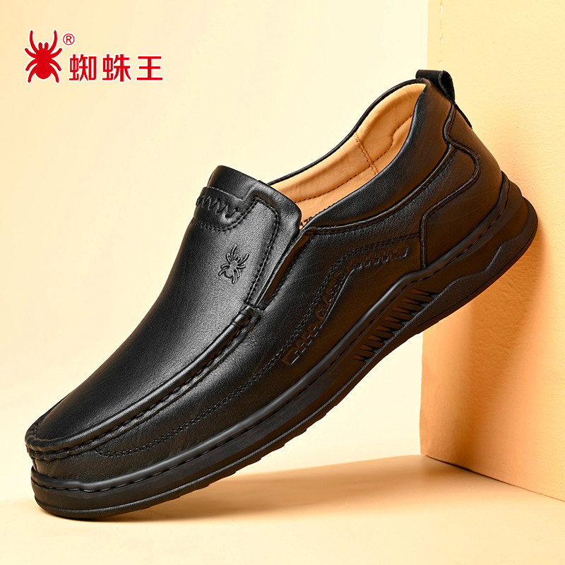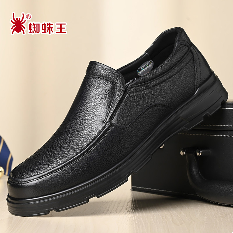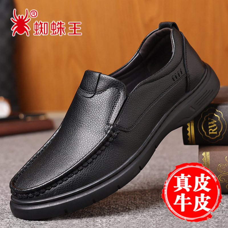 蜘蛛王男鞋2023秋季真皮商务休闲皮鞋男士软底单鞋中老年爸爸鞋子
