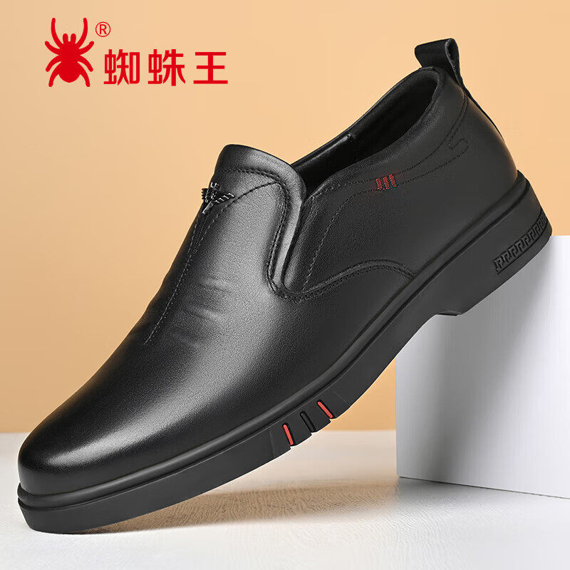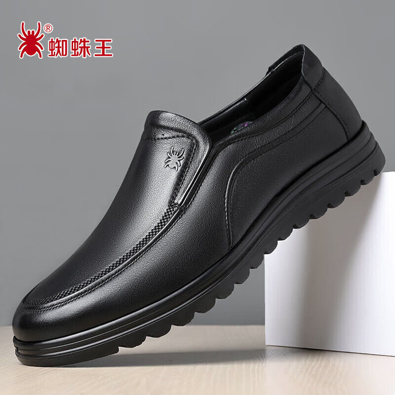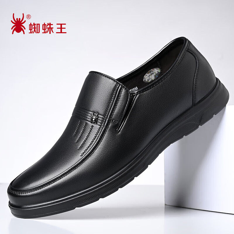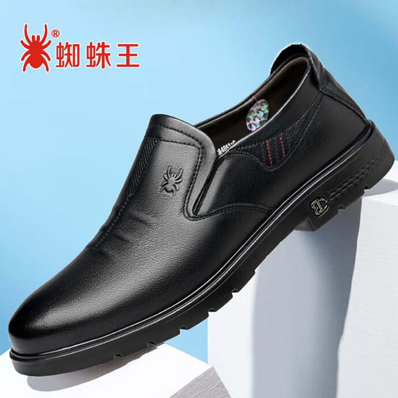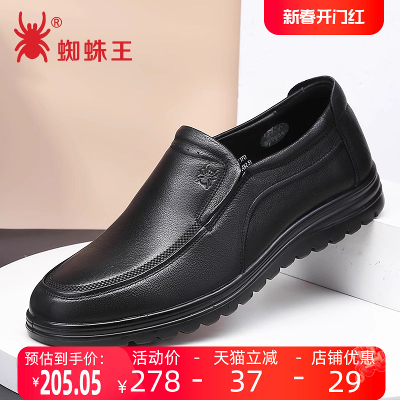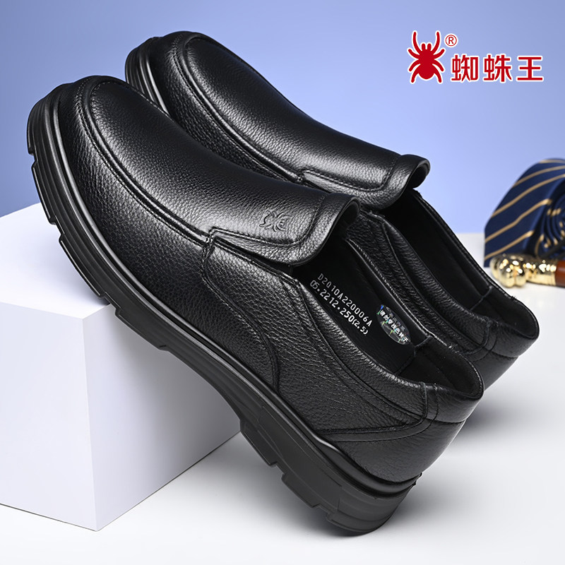 蜘蛛王男鞋2023秋季真皮商务休闲皮鞋男士软底单鞋中老年爸爸鞋子