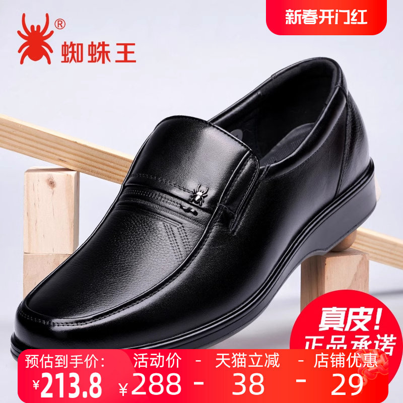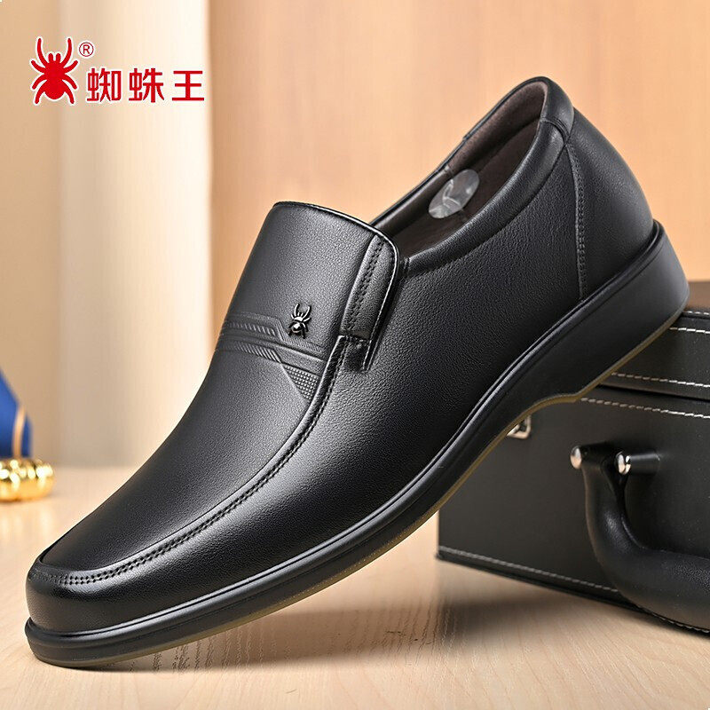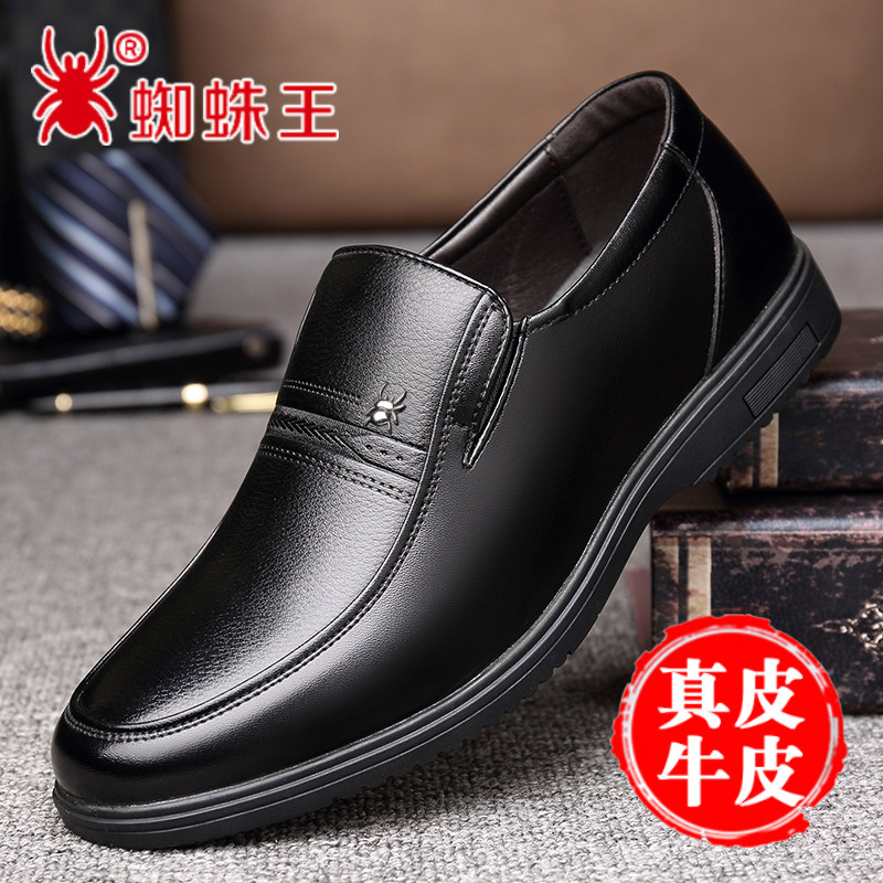 蜘蛛王男鞋真皮春秋新款软底休闲中老年夏透气正装商务黑皮鞋男士