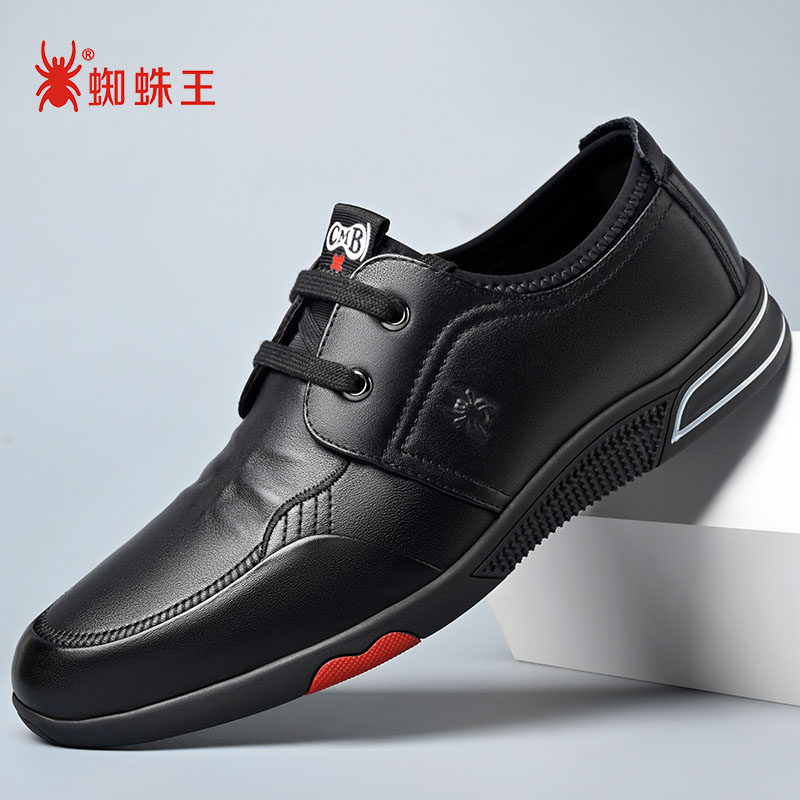 蜘蛛王男鞋春季新款休闲皮鞋男士真皮潮流驾车耐磨透气中老年鞋子