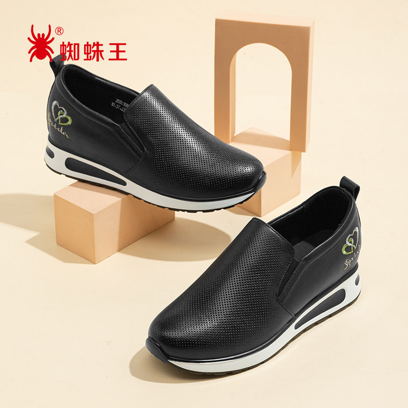 蜘蛛王女鞋真皮单鞋春秋新款休闲鞋软底夏内增高防滑中老年妈妈鞋