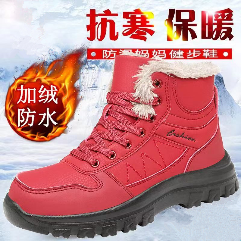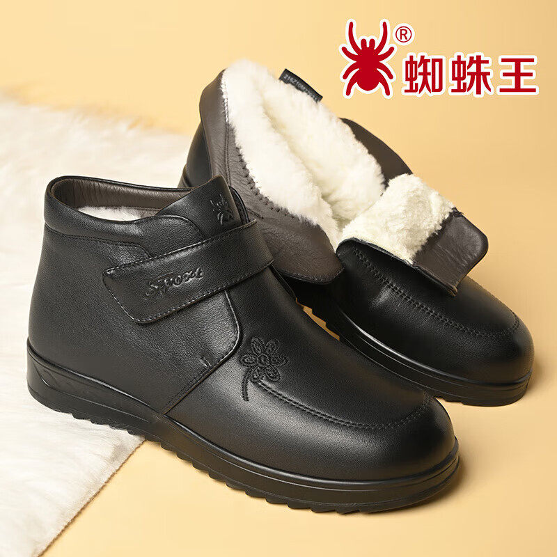 蜘蛛王女鞋羊毛加绒保暖妈妈鞋软底舒适棉鞋中老年人棉皮鞋女时尚