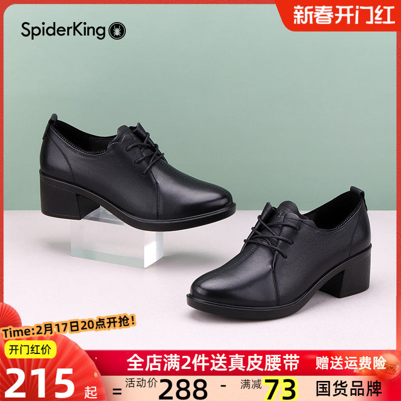 蜘蛛王女鞋2023秋季新品真皮中老年复古小皮鞋粗跟单鞋女牛皮鞋子