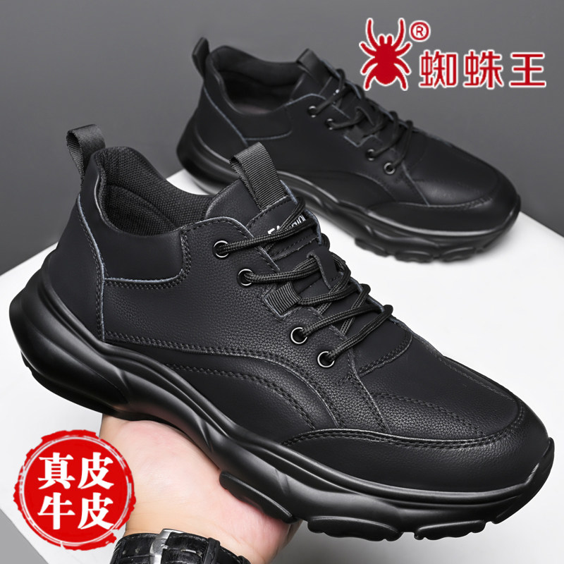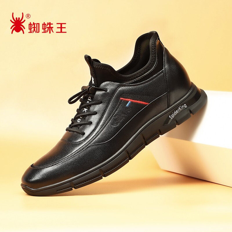蜘蛛王男鞋2023年春秋季新款内增高皮鞋男潮流百搭男士休闲鞋真皮