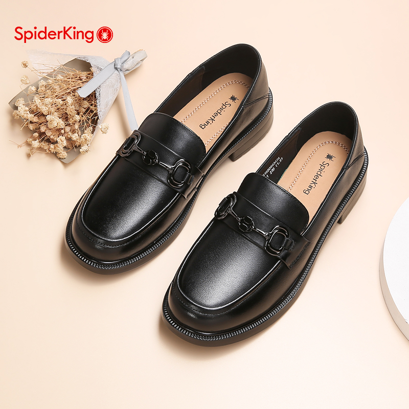 蜘蛛王乐福鞋女2023秋季新款女鞋真皮JK软底小皮鞋平底工作女单鞋