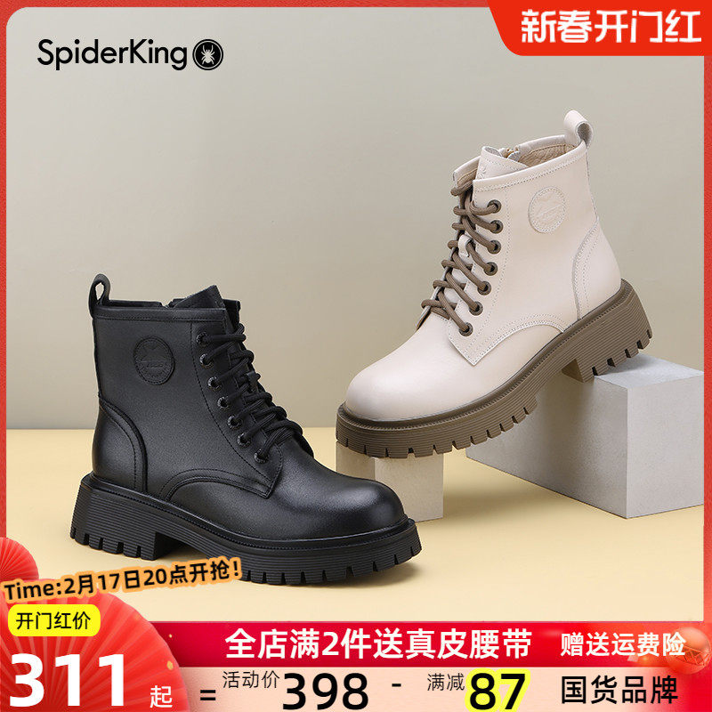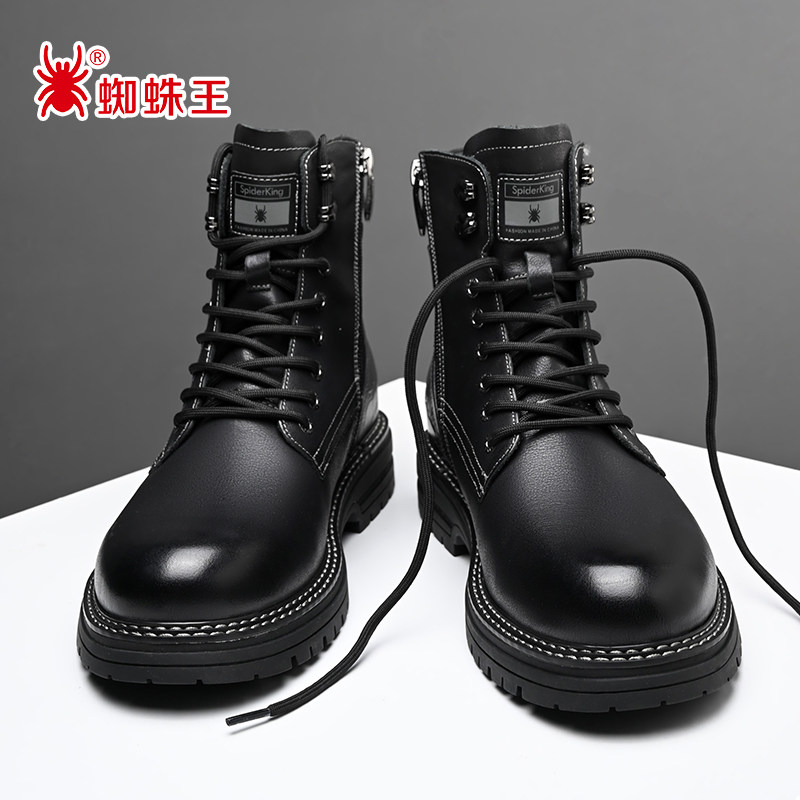 蜘蛛王马丁靴2023新款秋季潮流英伦真皮黑色单鞋冬季高帮工装靴男