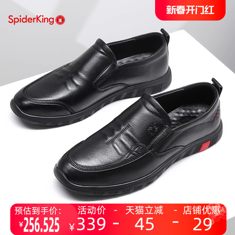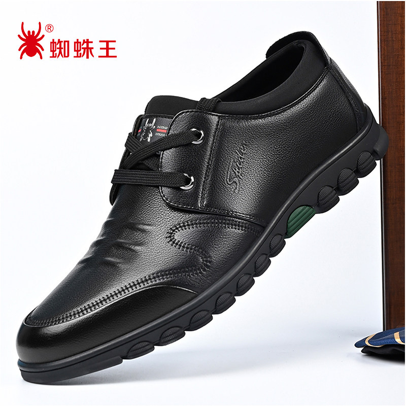 蜘蛛王男鞋真皮正装皮鞋男商务2023新款秋冬季爸爸鞋休闲男士单鞋